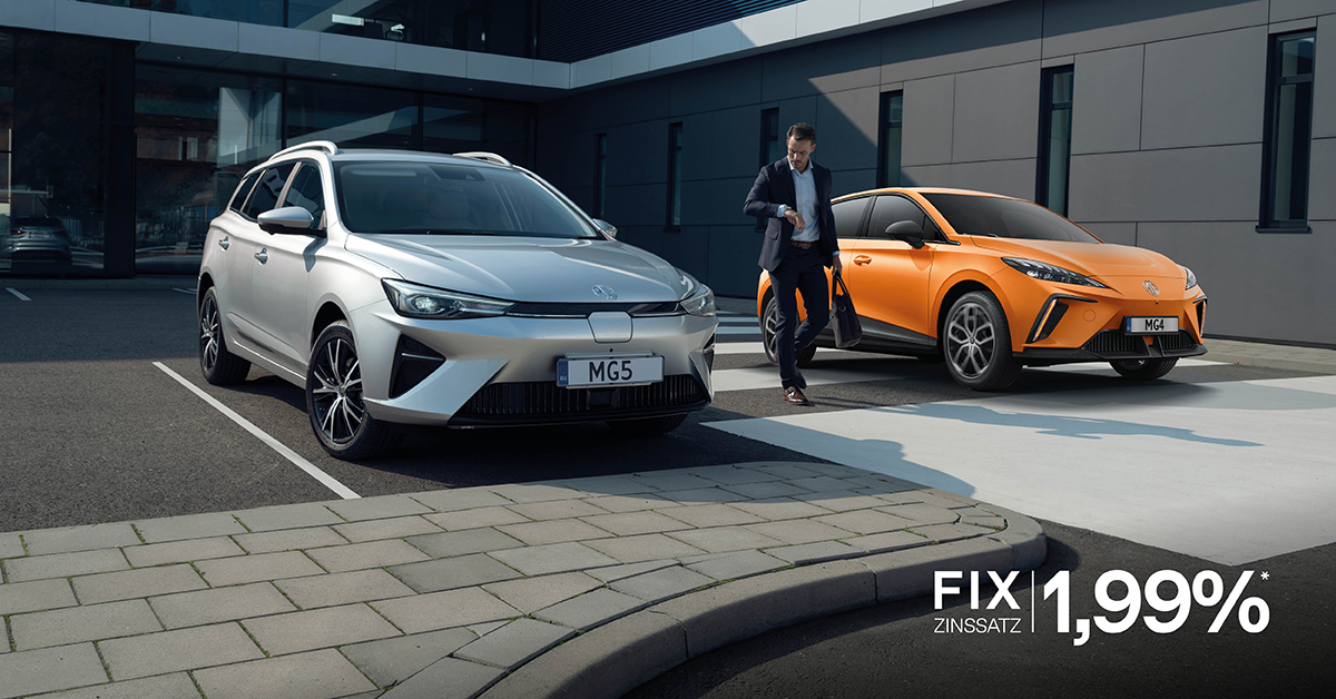 **1,99 % Fixzinssatz gültig bei Finanzierung über die Denzel Leasing GmbH. ***Repräsentatives Beispiel für eine Leasingfinanzierung der Denzel Leasing GmbH für einen MG4 Electric Standard (Privatkunde). Kaufpreis (Barzahlungspreis inkl. NoVA und MwSt): € 25.990,00, Anzahlung: € 7.797,00, Restwert: € 13.037,08, Bonitätsprüfungsgebühr : € 99,00, Laufzeit: 36 Monate, monatliche Rate: € 169,00, Sollzinssatz: 1,99 % p.a. fix, effektiver Jahreszins: 2,58% p.a., Rechtsgeschäftsgebühr: € 153,78, Gesamtleasingbetrag: € 18.193,00, Gesamtbetrag: € 27.170,72. Barzahlungspreis beinhaltet Wegfahrbonus in Höhe von € 2.600,- (gültig für MG4 Electric Standard), € 2.400,- E-Mobilitätsbonus inkl. MwSt. sowie € 3.000,- Förderung seitens Bundesministerium Klimaschutz, Umwelt, Energie, Mobilität, Innovation und Technologie, sämtliche Details dazu unter www.umweltfoerderung.at. E-Mobilitätsbonus gültig für E-PKW mit reinem Elektroantrieb (BEV). Der Preisvorteil bezieht sich auf die Höhe des E-Mobilitätsbonus (Herstelleranteil + staatlicher Anteil). °Hersteller-Garantie von 7 Jahren oder 150.000 km (je nachdem, was zuerst eintrifft). Diese gilt auch auf definierte HV-Komponenten, Antriebsbatterie und Durchrostung. Nähere Infos bei Ihrem MG Partner. Symbolabbildung. Satz- und Druckfehler vorbehalten. Stromverbrauch: 16,0 - 18,7 kWh / 100 km. Elektrische Reichweite nach WLTP: bis zu 520 km.